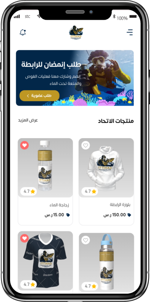 خصومات على منتجات الرابطة من خلال تطبيق خاص بالرابطة يمكنك الطلب , كما تسوقك من خلال التطبيق انت تدعم الرابطة
